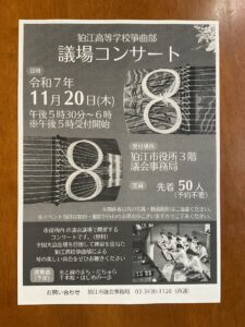 11/20(木)狛江高校箏曲部 議場コンサート♪ 無料です〜